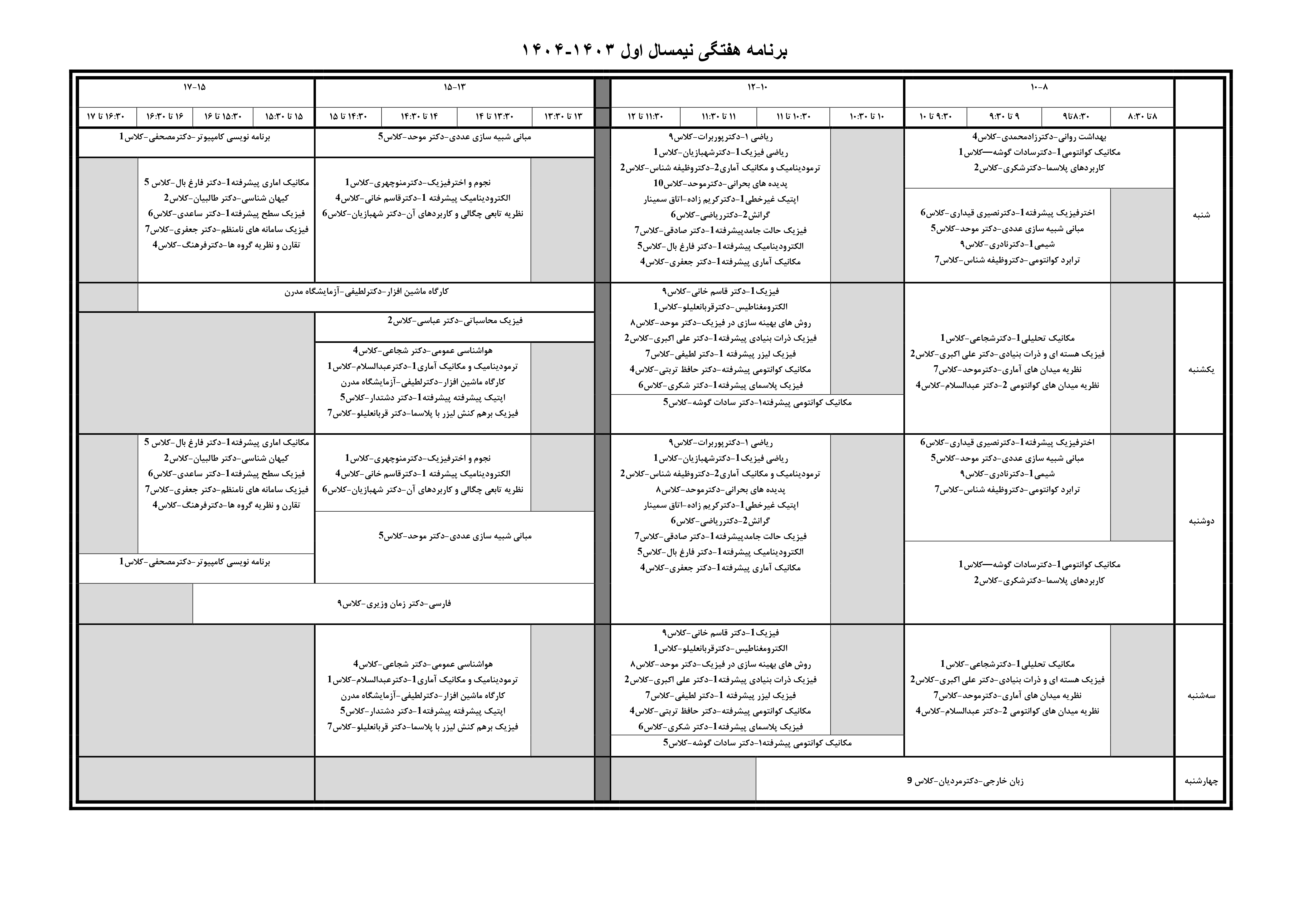 برنامه دروس دانشکده فیزیک در پاییز 1403
