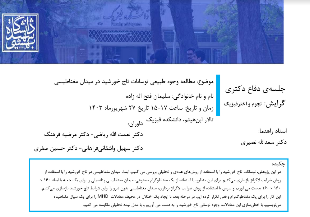 جلسه دکتری گرایش نجوم و اخترفیزیک-سلیمان فتح اله زاده