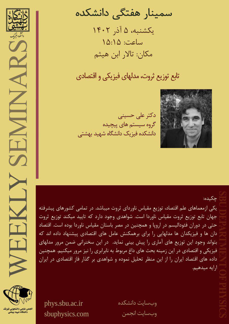 👨🏫 دکتر سید علی حسینی گروه سیستم های پیچیده دانشگاه شهید بهشتی