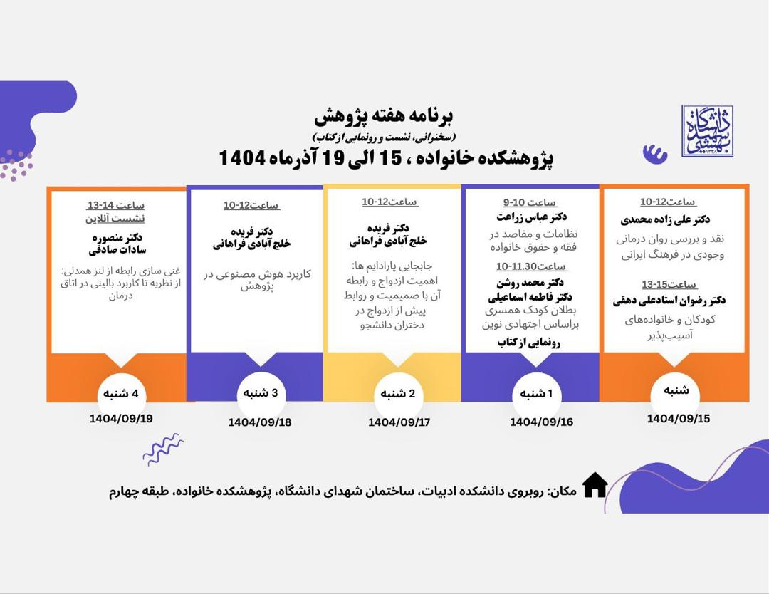 📌 برنامه های هفته پژوهش ۱۵ الی ۲۵ آذر ۱۴۰۴